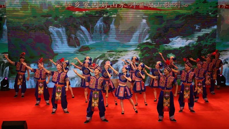為了演繹出壯族歌舞的精髓和韻味,桂咨青年在繁忙的工作之余排演磨合,學(xué)習(xí)壯語(yǔ)發(fā)音,熟記舞蹈動(dòng)作?!秹燕l(xiāng)兒女頌黨恩》的精彩演繹,是桂咨青年銳意創(chuàng)新、蓬勃向上的生動(dòng)寫(xiě)照。
