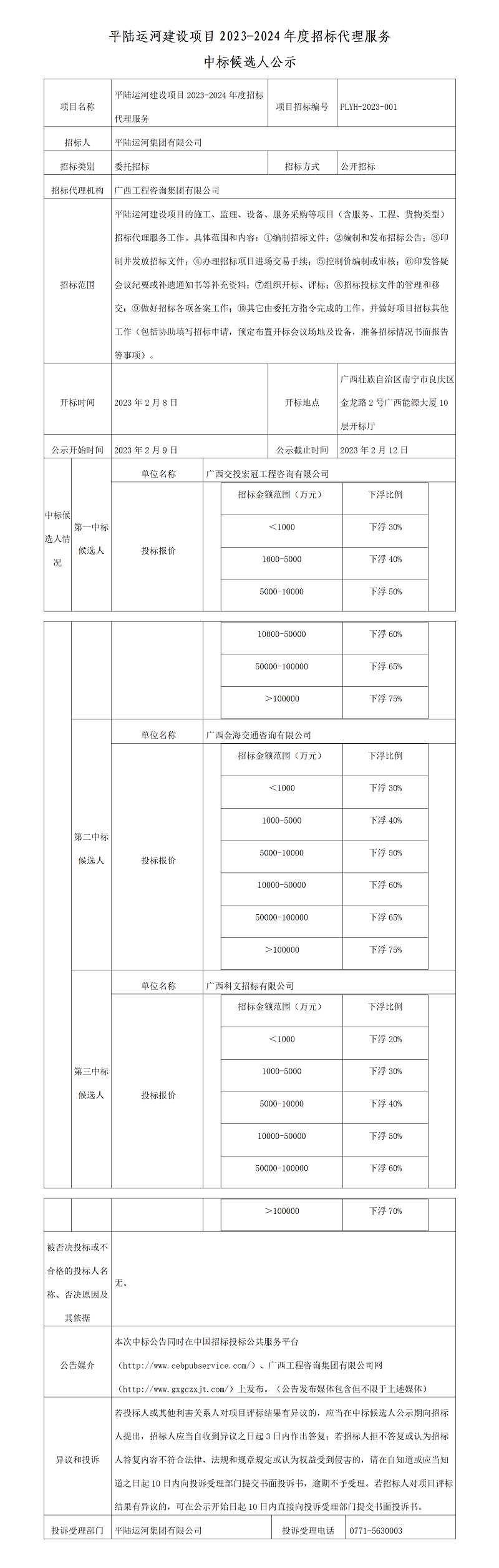 平陸運河建設(shè)項目2023-2024年度招標代理服務(wù)中標候選人公示