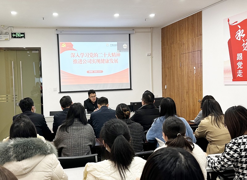 黨的二十大勝利召開以來,為進一步學(xué)習(xí)宣傳貫徹黨的二十大精神,廣西工程咨詢集團有限公司領(lǐng)導(dǎo)班子成員分別走進各基層黨支部、基層業(yè)務(wù)一線,以一場場生動的宣講、一次次深入的交流,全面系統(tǒng)、生動深入地宣講黨的二十大精神,迅速在公司上下掀起了學(xué)習(xí)宣傳貫徹黨的二十大精神的熱潮,讓黨的二十大精神在工作中走深走實、見行見效。