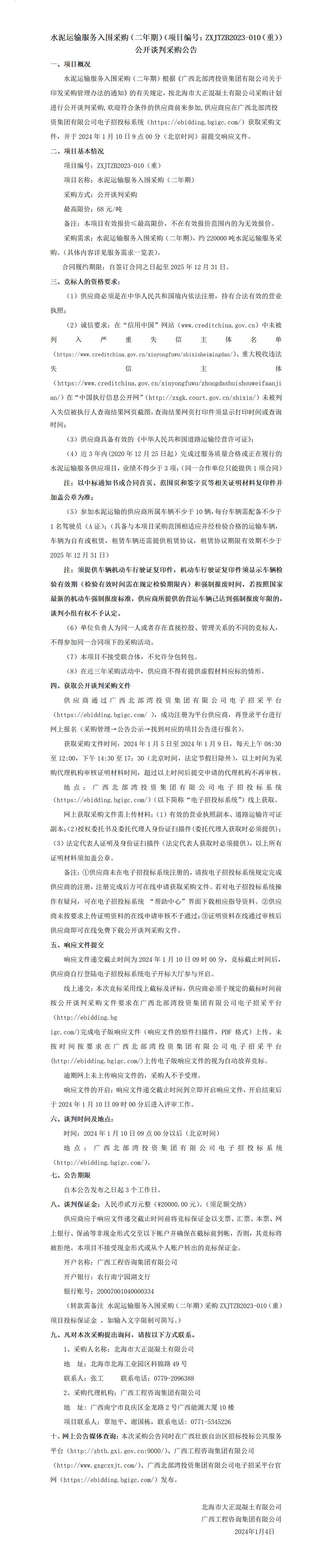 水泥運輸服務(wù)入圍采購(二年期)(項目編號:ZXJTZB2023-010(重)) 公開談判采購公告