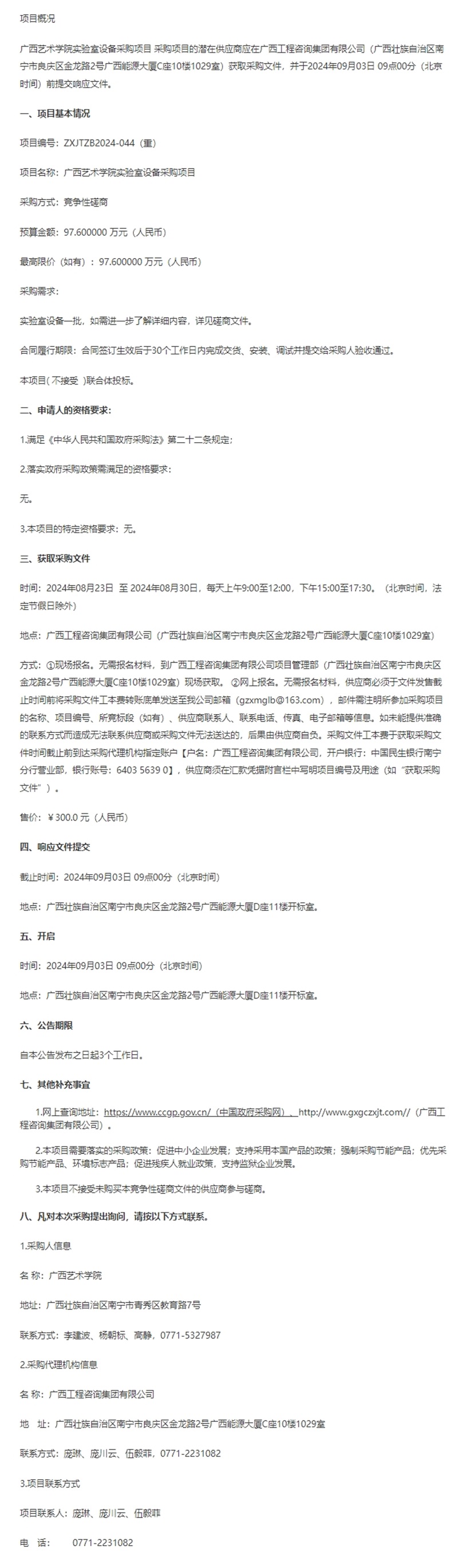 廣西藝術(shù)學(xué)院實驗室設(shè)備采購項目競爭性磋商